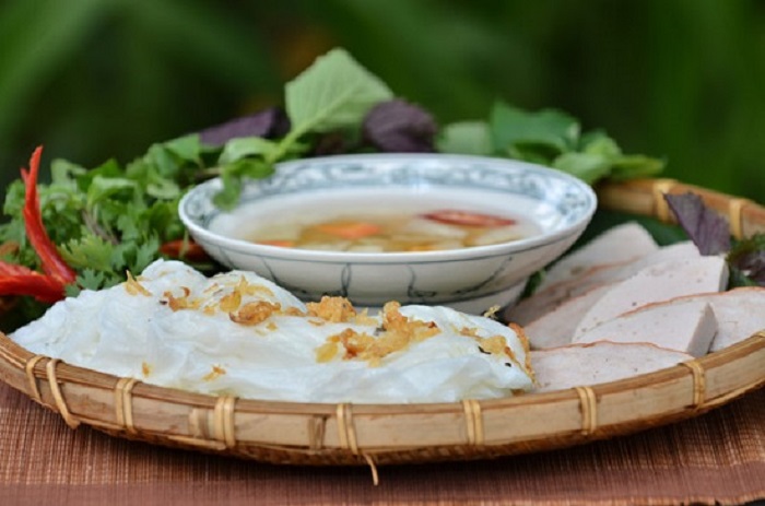 Bánh cuốn Thanh Trì đặc biệt nhất ở chỗ tráng mỏng hành mỡ thoa vào mướt mặt. Ảnh: Gocheap
