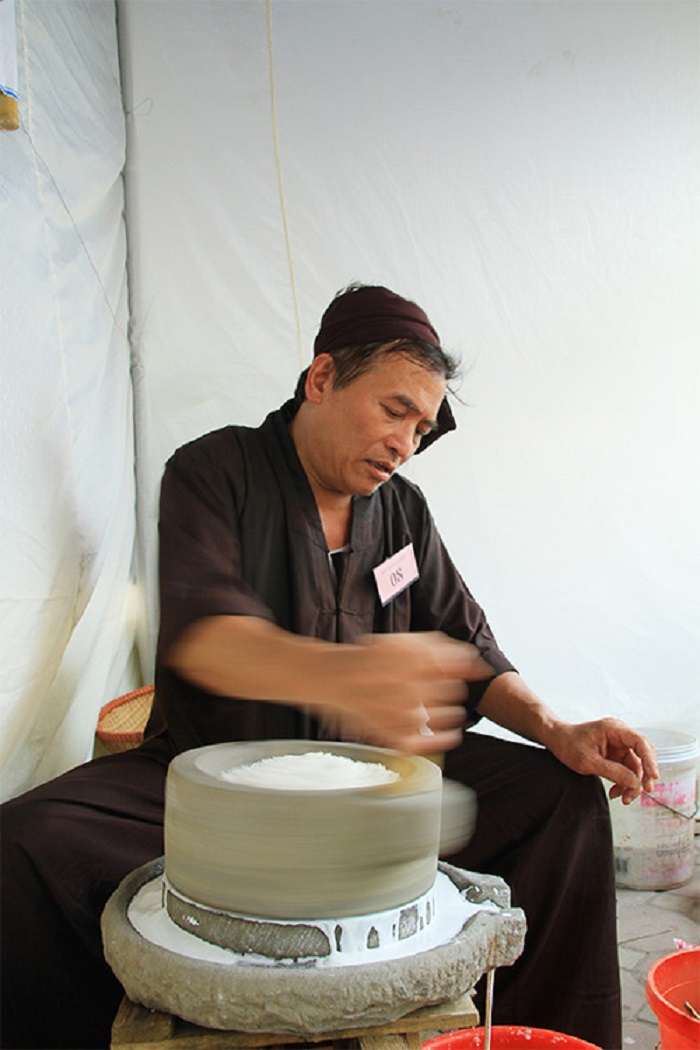 Trước khi đem xay gạo thành bột, người ta phải vò sạch và ngâm chừng 2-3 tiếng. Khâu xay bột cực kỳ quan trọng. Nếu bột loãng quá bánh sẽ nát, mà đặc quá bánh sẽ dày. Chỉ có xay bột vừa tay, độ nhuyễn hoàn hảo thì mặt bánh cuốn mới được láng bóng, óng ả. Đặc biệt, khi tráng bột bánh trên phên, người làm bánh cũng phải thật tinh khéo để dàn bánh thật mỏng. Bánh có mỏng thì ăn mới ngon. Cảm giác chấm chiếc bánh trắng, mề vào trong bát nước mắm màu hổ phách, rồi đưa vào miệng… chưa nhai mà bánh đã trôi tuột xuống cổ mất rồi mới tuyệt làm sao?