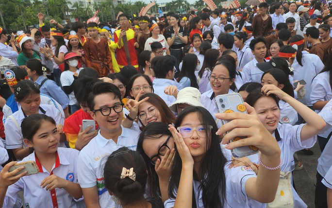 Hình ảnh biển người tại điểm cầu Thanh Hóa theo dõi, cổ vũ Lê Xuân Mạnh "leo núi" sáng nay 8-10: