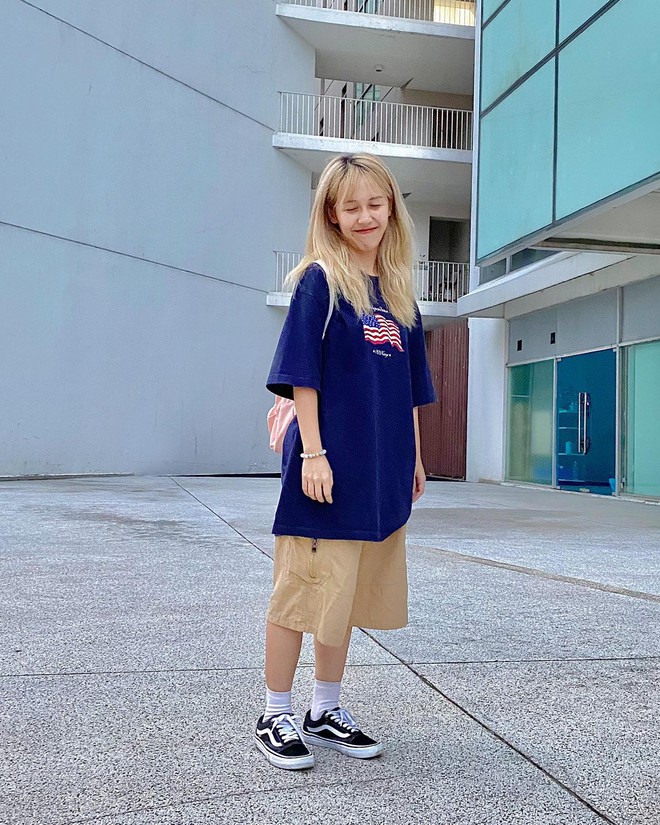 Chẳng cần phải là fan cứng Hậu Hoàng cũng biết từ trước đến nay, hot YouTuber luôn gắn liền với hình ảnh lầy lội, tưng tửng. Style ăn mặc của Hậu cũng toát lên vẻ năng động, nhí nhảnh với quần ống rộng, áo thun rộng nốt và sneaker.
