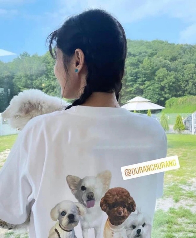 Trong ảnh, Jang Nara đang chơi đùa cùng 1 chú cún. Cô để mặt mộc 100% nhưng vẫn khiến khán giả trầm trồ vì làn da trắng sáng không tỳ vết. Hơn thế, Jang Nara còn cười tươi khá vui vẻ khi đối diện với ống kính. Có thể nói nữ diễn viên đang rất hạnh phúc trong tình yêu hôn nhân nên mới rạng rỡ như vậy.