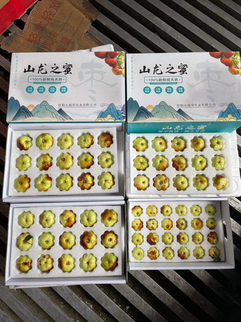 Hồng táo dẹt được đóng hộp đẹp đẽ, làm quà biếu trông rất sang trọng