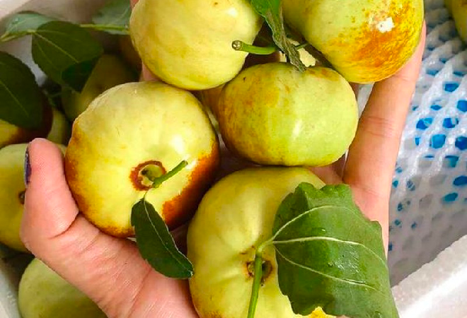 Hồng táo dẹt mới xuất hiện trên thị trường Việt Nam, nhiều chị em tìm mua ăn thử vì lạ lẫm