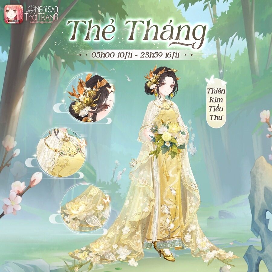 Trang phục Thiên Kim Tiểu Thư sẽ xuất hiện từ ngày 10 - 16/11 trong gói quà Thẻ Tháng. Cơ hội sở hữu bộ cánh đặc biệt này chỉ diễn ra trong ít ngày, thế nên game thủ hãy nhanh chóng chớp lấy thời cơ để nhận Thiên Kim Tiểu Thư và một số phần quà hữu ích khác.