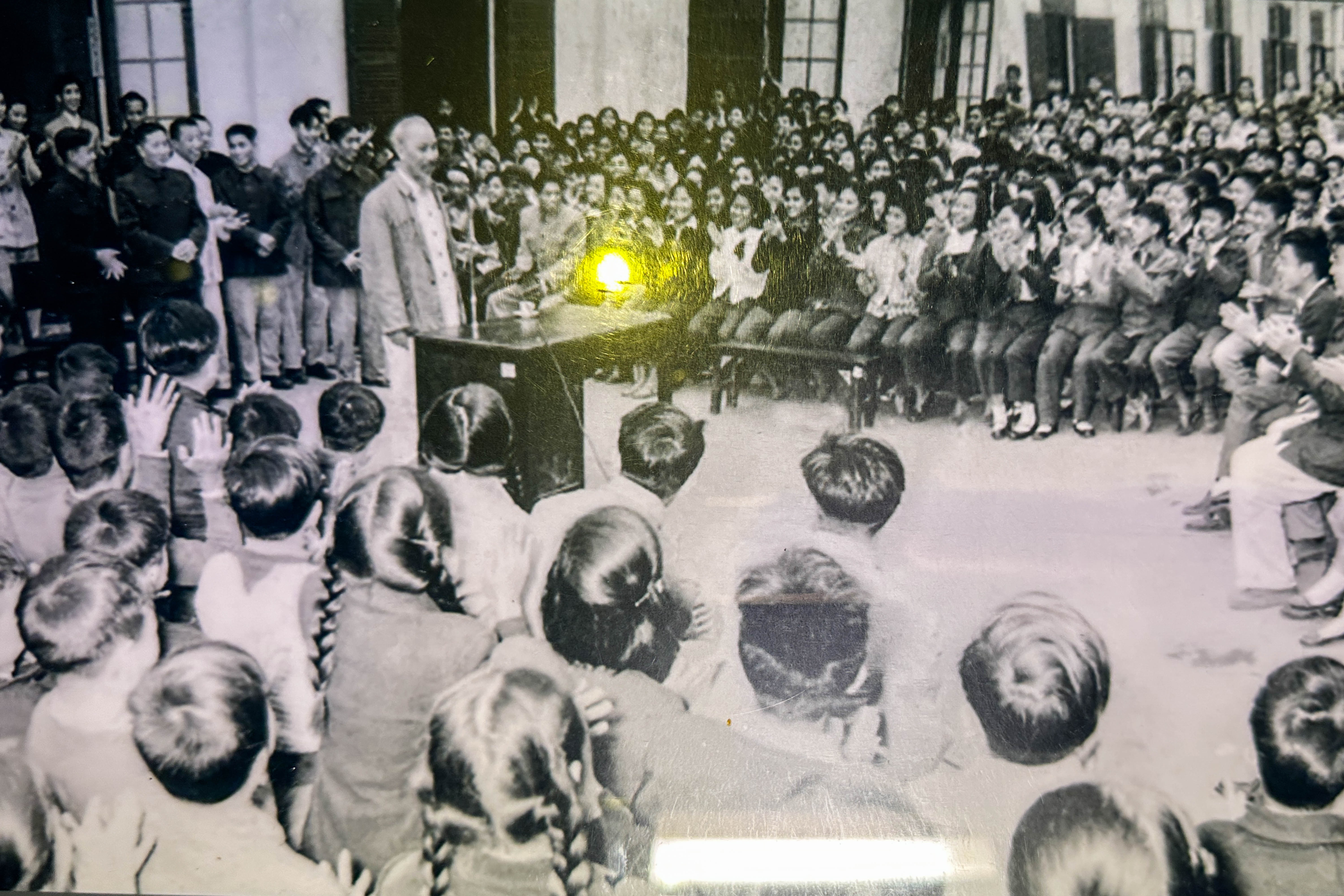 Chủ tịch Hồ Chí Minh thăm trường Trung học Trung Hoa Hà Nội ngày 26/1/1957 (Ảnh: Bảo tàng Hồ Chí Minh).