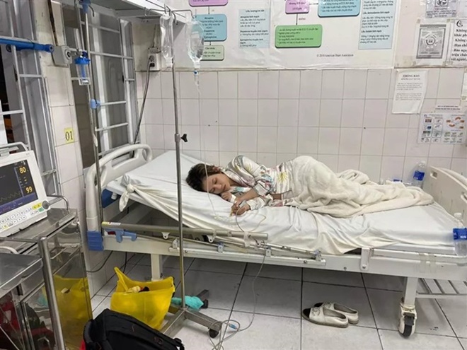Tình cũ Anh Đức mệt mỏi nằm trên giường bệnh sau những ngày điều trị.