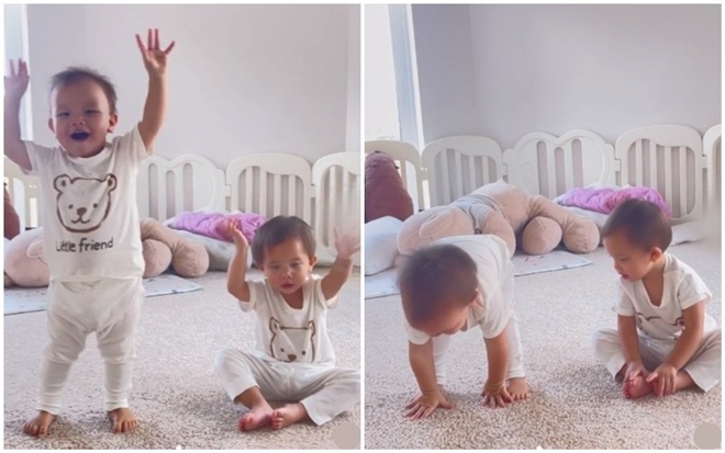 Mới đây, hình ảnh Leon - Lisa đặc biệt thích thú học những bài tập yoga từ mẹ và bà ngoại khiến dân mạng phì cười vì dễ thương. Đến hiện tại đang trong quá trình học nói, Lisa - Leon càng bộc lộ niềm yêu thích mãnh liệt hơn với bộ môn khó nhằn này. Ngay khi nghe người lớn bắt nhịp động tác mở đầu cho chuỗi bài tập, cậu út Leon đã nhanh chóng vào vị trí khởi động để thực hiện bài tập. Đang ngồi bên cạnh em trai, Lisa chưa kịp đứng dậy nhưng vẫn kết hợp đều đặn với tiếng đếm để vươn người lên xuống.