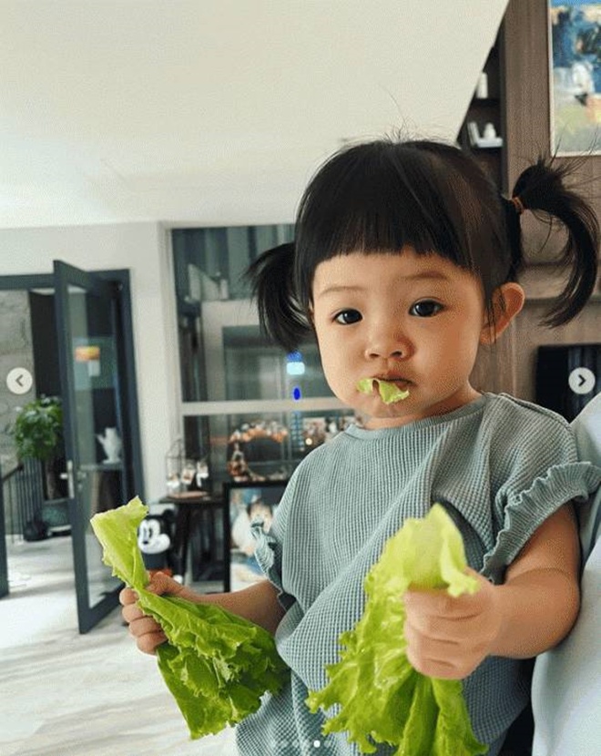 Trên trang Instagram của Suchin, Đàm Thu Trang vừa đăng tải loạt ảnh ghi lại khoảnh khắc cô bé "ăn rau" siêu cưng kèm dòng trạng thái: "Em bé mê ăn rau". Trong ảnh, Suchin cầm những lá xà lách bằng cả 2 tay, miệng còn đang "ngấu nghiến" miếng rau ngon lành, trông cứ như bé "nghé con" đang ăn cỏ. Có thể thấy, công chúa nhỏ nhà này vô cùng đáng yêu, khiến ai nấy đều phải lụi tim vì không những xinh xắn, lém lỉnh mà còn vô cùng thông minh và ngoan ngoãn.
