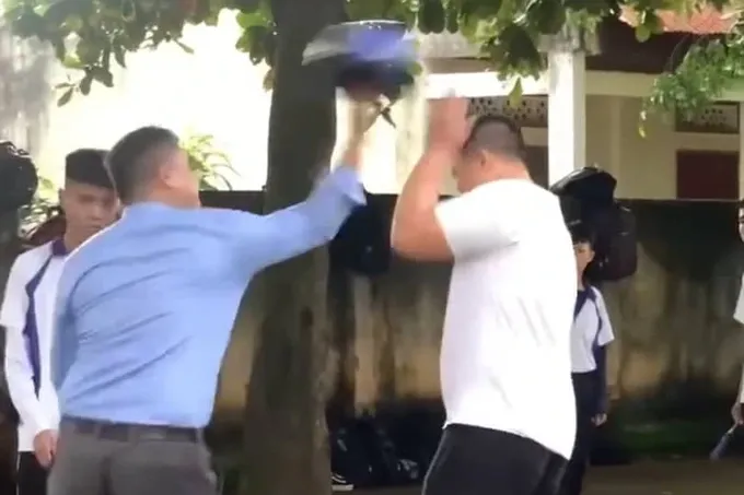 Tối qua, video một người đàn ông dùng thước gỗ vụt vào đầu, mặt, chân một nam sinh được lan truyền trên mạng xã hội. Sau đó, người này tiếp tục dùng thước và mũ bảo hiểm đánh vào đầu nam sinh đứng bên cạnh, trước sự chứng kiến của nhiều người.