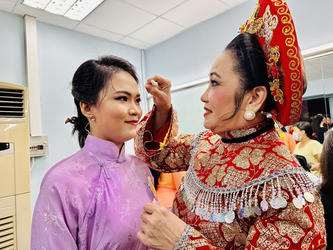 Thí sinh Phan Văn Nhân được NSƯT Thu Vân hỗ trợ dự thi trích đoạn “Miếng trầu cánh phượng”
