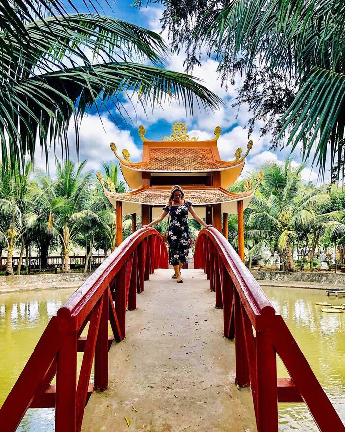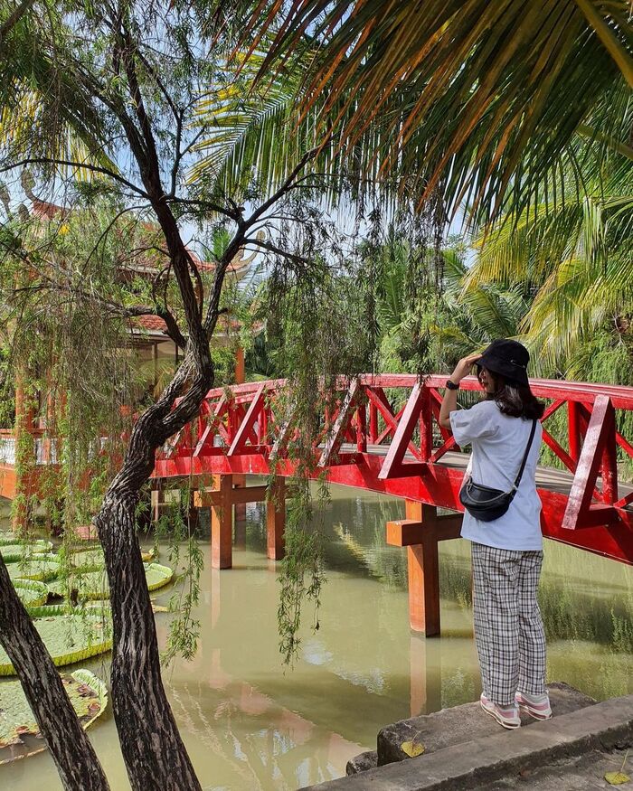 Đặc biệt, khu nhà thủy tạ tọa lạc giữa hồ súng thơ mộng và được bao bọc giữa không gian sân vườn xanh mát chắc chắn là địa điểm check-in được nhiều người săn đón nhất tại thiền viện. Bạn có thể dạo bước trên cây cầu màu đỏ rực rỡ bắc ngang khu hồ và thoải mái căn cho mình những góc view cực phẩm bắt trọn được background đẹp tựa tiên cảnh này, một trong trải nghiệm thú vị mà cá tín đồ đam mê săn ảnh chẳng thể bỏ lỡ trong tour du lịch Cần Thơ.