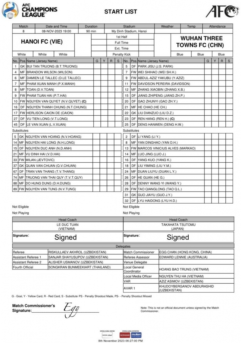 Chúng tôi sẽ cập nhật diễn biến chi tiết trận đấu giữa CLB Hà Nội vs CLB Wuhan Three Towns thông qua bài viết này.