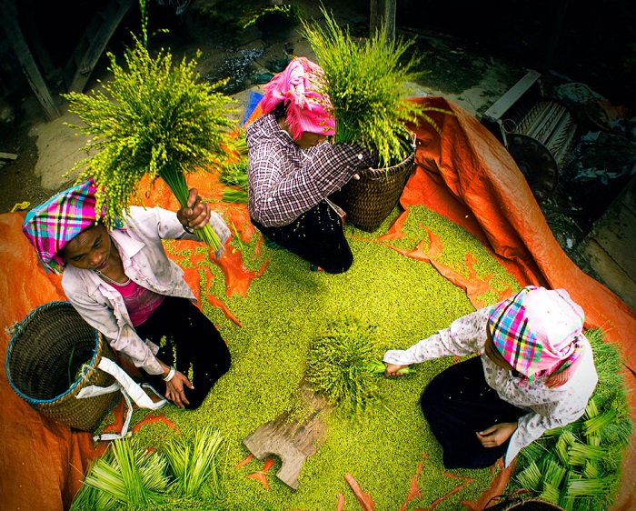 Đầu tiên là khâu chọn nguyên liệu. Trong món xôi ngũ sắc Yên Bái – món ngon ở Yên Bái, nguyên liệu nhiều và quan trọng nhất là hạt nếp. Ở Yên Bái, xã Tú Lệ nổi tiếng nhất vùng về hạt gạo nếp to, trắng trong, khi nấu sẽ cho độ ngon dẻo như ý.