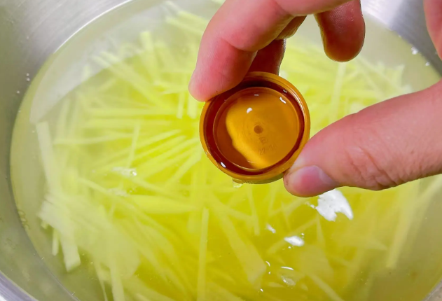 - Ngâm khoai tây trong nước pha giấm trước khi xào: Cách này giúp khoai ra bớt tinh bột, không bị dính chảo và giòn hơn khi chiên.
