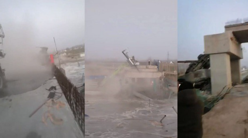 Sập cầu đang thi công tại Diêm Thành, Giang Tô, vào chiều ngày 2-2. Ảnh: YouTube, Đại Phong Tân Văn