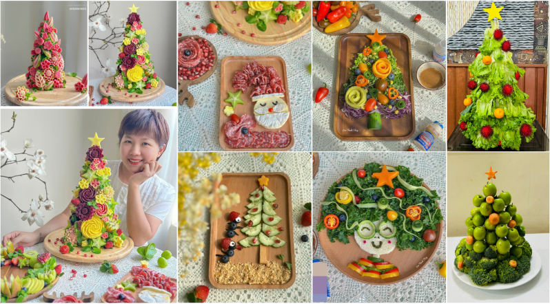 Giáng sinh bước ra từ gian bếp: Người phụ nữ thắp sáng mùa Noel bằng những cây thông từ hoa quả, thịt nguội, rau xà lách