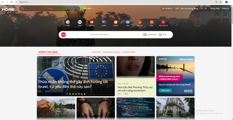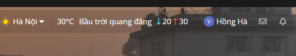 Trên cùng bên phải sẽ hiển thị cho biết thời tiết (nhiệt độ cao nhất, thấp nhất trong ngày), tên người dùng và thông báo cho bác biết ai đang tương tác với mình.