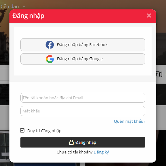 Cửa sổ Đăng nhập mở ra, chọn Đăng nhập bằng Google và thực hiện các bước tiếp theo. Lưu ý: trong trường hợp đã bấm chọn Đăng nhập bằng Google mà không đăng nhập được, bác hãy nhấn phím F5 trên bàn phím để tải lại trang nhé.