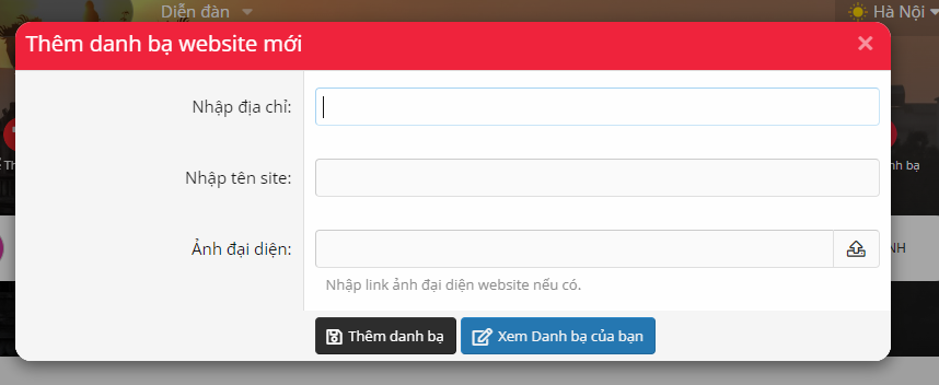 Thêm Danh bạ: Bấm vào nút Thêm danh bạ (+) để thêm website mình yêu thích. Sau khi nhập địa chỉ website vào ô Nhập địa chỉ, các bác có thể đặt tên và ảnh đại diện cho danh bạ mình lưu tùy ý.