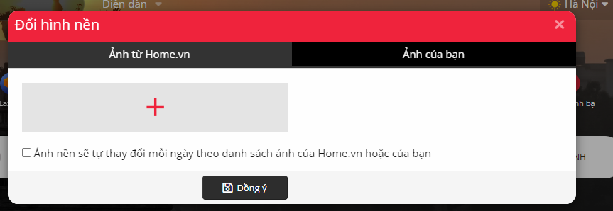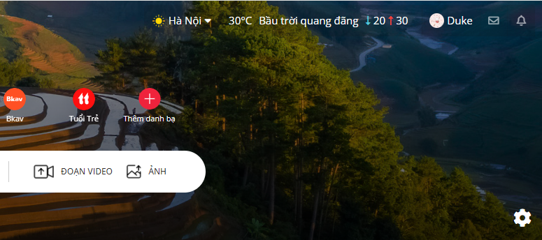 Thay ảnh bìa: Home.vn cung cấp hình ảnh quảng bá đất nước con người Việt Nam trên vị trí trang trọng nhất. Tuy nhiên, bác có thể thay đổi ảnh bìa Home.vn tùy ý bằng cách di con trỏ chuột vào ảnh bìa sẽ hiển thị ra biểu tượng bánh răng màu trắng ở dưới góc ảnh bìa bên phải.