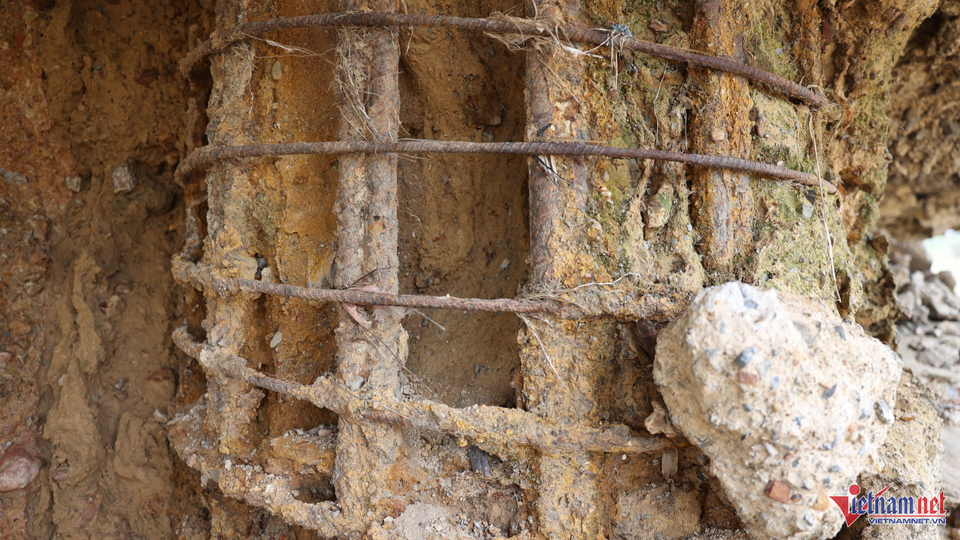 Một cọc của trụ T3 bị bong hoàn toàn lớp bê tông bảo vệ cốt thép. Ảnh: Đức Hoàng