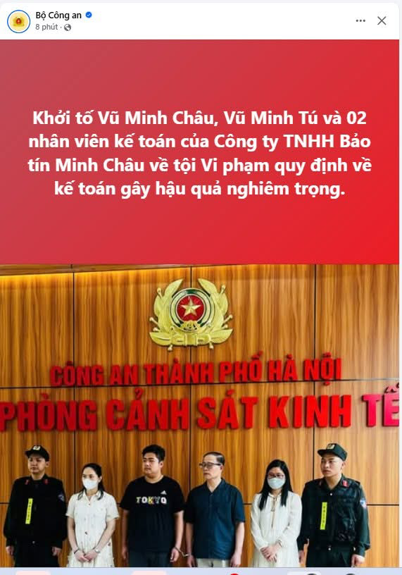 Ngày 02/4/2026, Cơ quan Cảnh sát điều tra CATP Hà Nội đã ra Quyết định định khởi tố vụ án, khởi tố bị can đối với đối tượng Vũ Minh Châu, Vũ Minh Tú và 02 nhân viên kế toán của Công ty về tội Vi phạm quy định về kế toán gây hậu quả nghiêm trọng.
