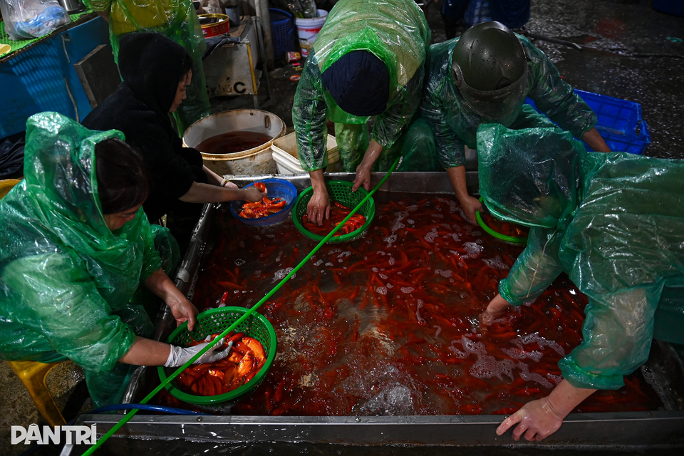 Theo ghi nhận của phóng viên Dân trí, từ đêm 21 đến rạng sáng 22 tháng Chạp, hàng trăm tiểu thương và lái buôn từ nhiều địa phương liên tục đổ về chợ để nhập cá. Những chuyến xe chở cá ra vào không ngừng, tiếng nước bắn, tiếng gọi nhau mua bán vang lên xuyên đêm giữa cái rét cắt da.