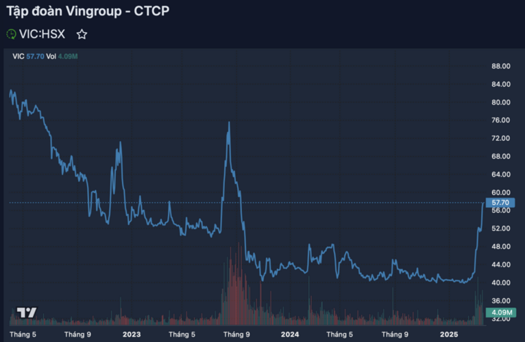 Cổ phiếu Vingroup tăng hơn 40% từ đầu tháng 3 lên vùng giá cao nhất trong vòng 18 tháng.