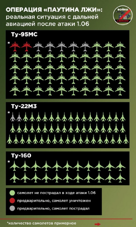 Nga nhanh chóng phủ nhận con số thiệt hại lớn này. Tuy nhiên, theo các hình ảnh vệ tinh thương mại thu được và phân tích từ Reuters cùng trang chuyên theo dõi quân sự "War Zone", một số thiệt hại đáng kể đã được xác nhận. Cụ thể, tại căn cứ Bereya (Irkutsk), có bốn máy bay ném bom Tu-95 và bốn chiếc Tu-22M3 bị trúng đạn. Trong khi đó, tại căn cứ Olenya (Murmansk), bốn máy bay Tu-95 và một máy bay vận tải cũng bị hư hại. Tổng cộng có ít nhất 13 máy bay lớn bị ảnh hưởng, trong đó có 8 chiếc Tu-95.