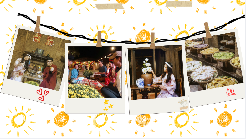 Với những ai yêu thích chụp ảnh, Lễ hội Tết Xưa gần như là một phim trường Tết thu nhỏ. Chợ hoa xuân rực rỡ sắc màu, những gian hàng Tết xưa, mâm cỗ ngày Tết, nếp nhà cổ, góc bếp lửa hồng hay con đường treo đèn lồng đều trở thành những góc check in mang đậm không khí xuân truyền thống. Chỉ cần một tà áo dài, một khung hình đủ nắng, là đã có thể lưu giữ trọn vẹn cảm giác Tết rất xưa mà rất mới.