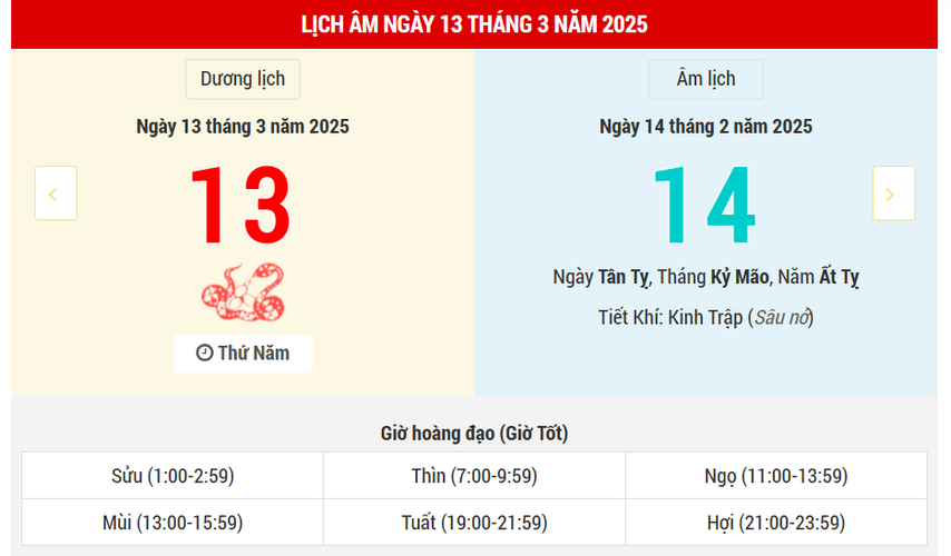 - Dương lịch: 13/3/2025 - Thứ Năm