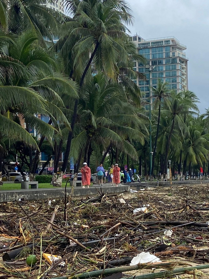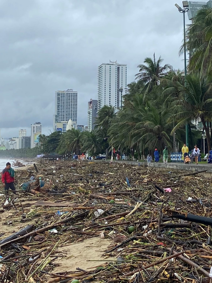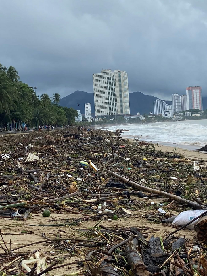 Trong trận lũ lịch sử năm 2025, bãi biển Nha Trang trở nên hoàn toàn khác lạ so với vẻ lung linh thường ngày.